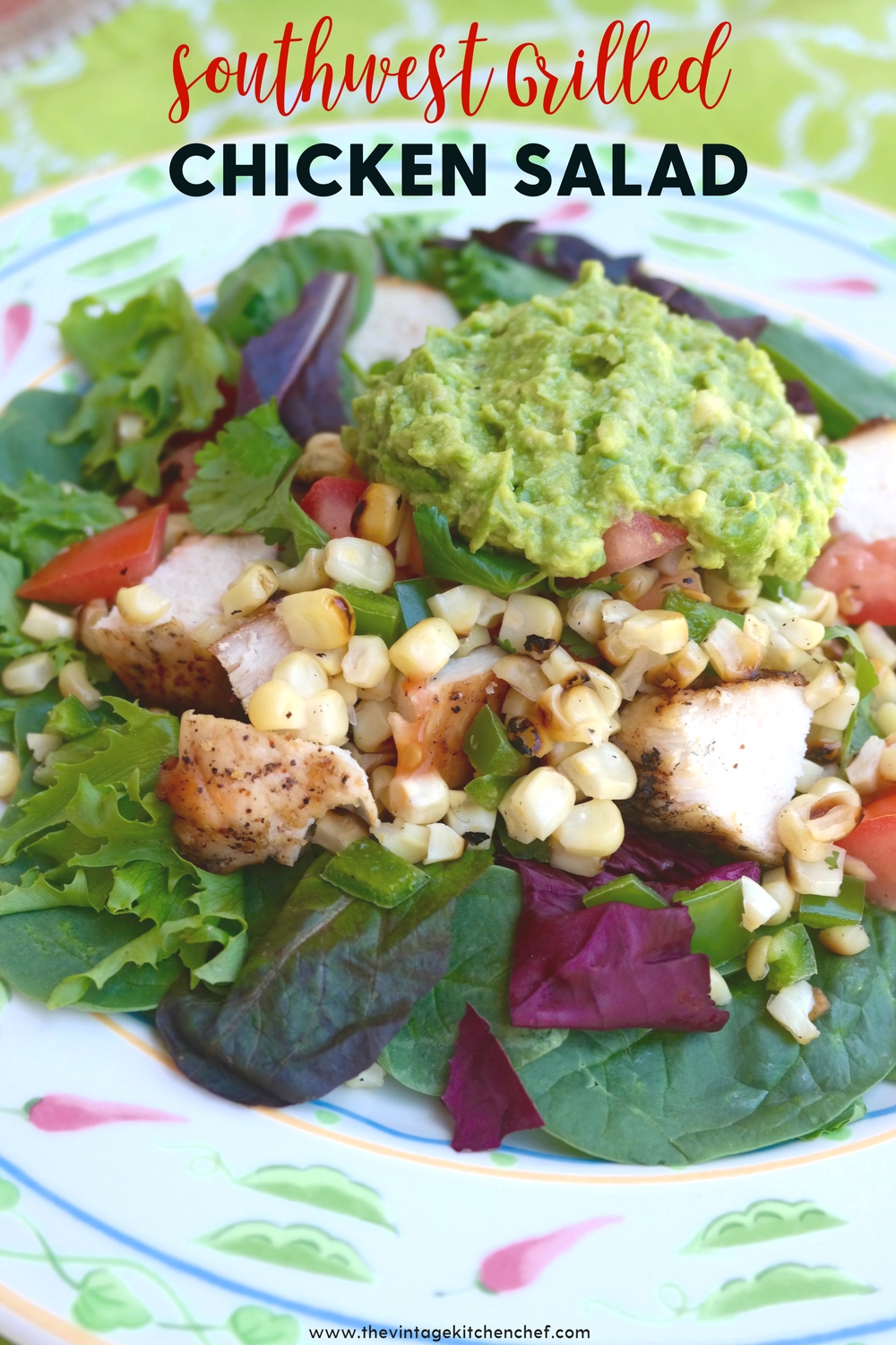 This yummy salad also tastes great with a little dollop of sour cream. It’s incredibly easy to put together and makes a great lunch or dinner. I use a jalapeno in mine, but if you want the crunch without the heat a colorful bell pepper or a more mild chile pepper will work nicely. Top Southwest Grilled Chicken Salad with some yummy and easy guacamole, then pour a bit of your choice of salad dressing over the top. A balsamic vinaigrette if my favorite, but Ranch is another tasty option! I’m a caterer turned food blogger and when I was catering this was easily my most requested salad.